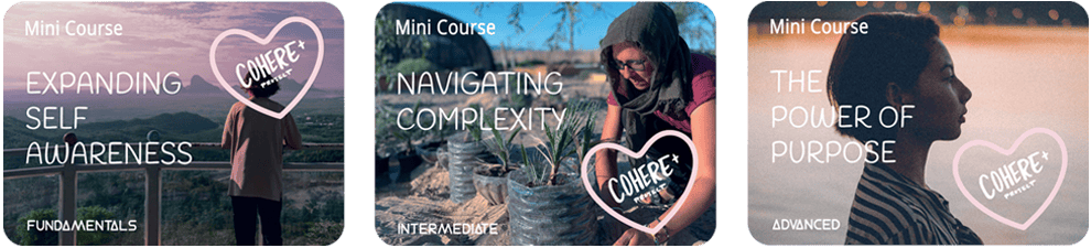 Our free mini courses have been curated and put together by leading researchers and educators in the coherence field. Take a free mini course or complete a whole learning series and uncover new teachings, practices and learnings that can help you bring greater coherence to your own life, project, community or organisation.